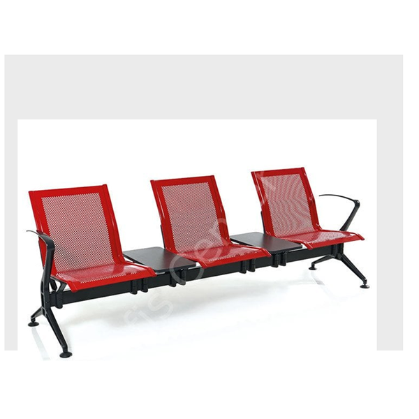 542 Üçlü Sehpalı Saclı bekleme koltuğumuz tamamen delikli sac malzeme den üretilmiş olup,farklı renklerde alternatifleri vardır. Elektrostatik toz boya ile boyanmaktadır, isteğe bağlı olarak farklı renklerde kullanılabilmektedir .İskelet yapısı ve Kolları alüminyumdur.